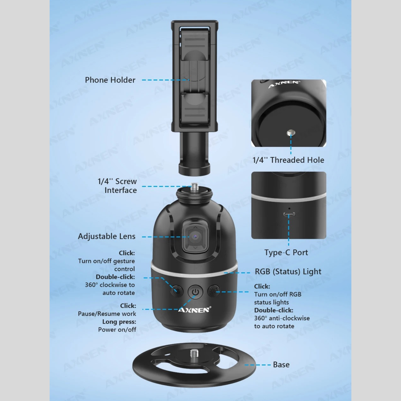 自動顔追跡デスクトップジンバル スマート360°回転式スマホホルダー – ワイヤレスリモコン付きセルフィースマホ三脚オプション. 🤩