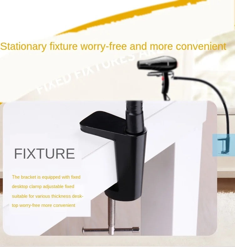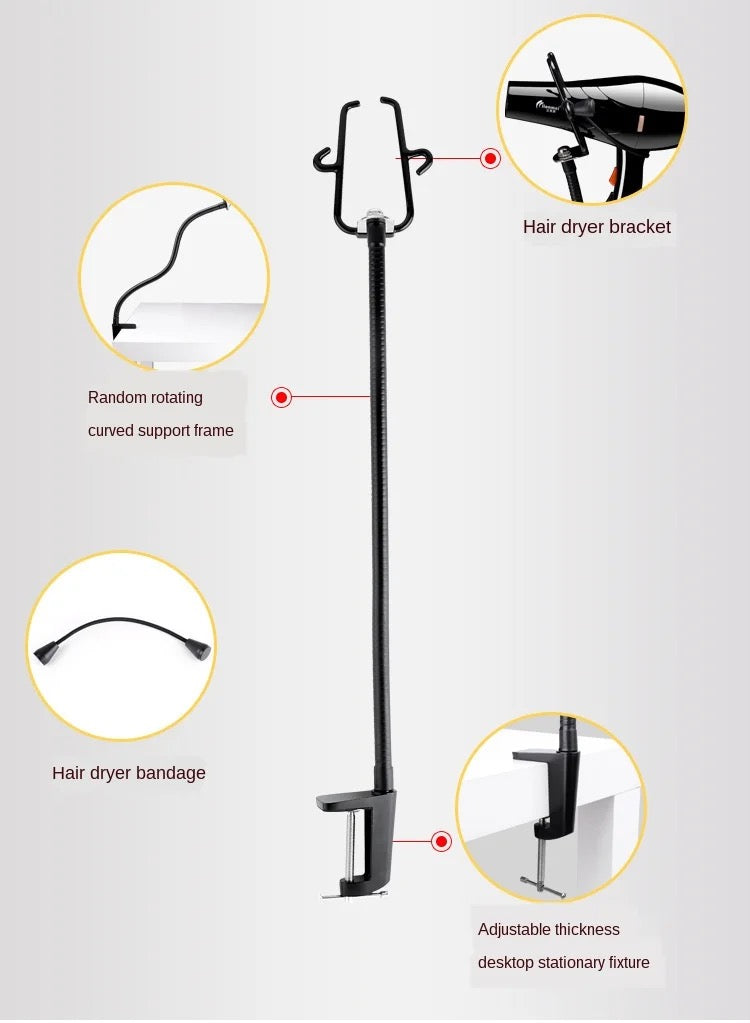 金属製のフレームをテーブルに固定することで、ドライヤーをしっかりと支え、使用中の安定性と快適性を確保します。